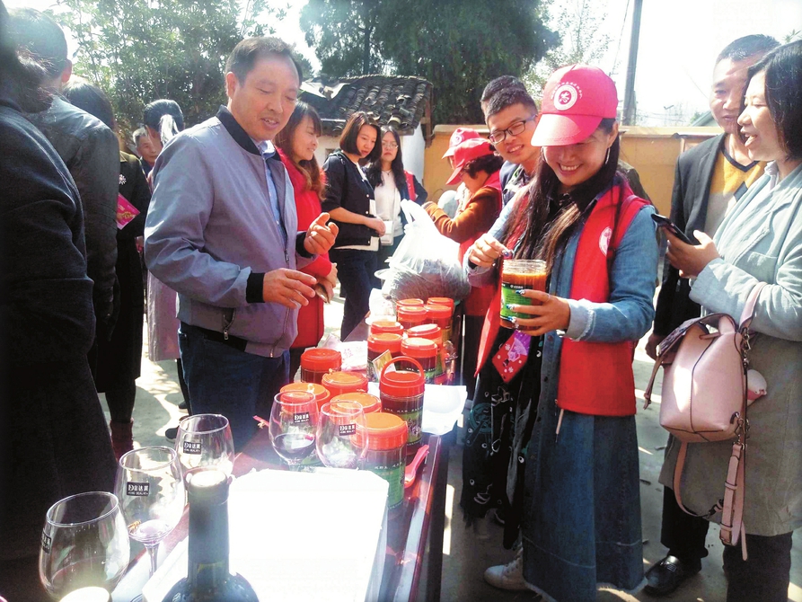 近年来,市林业局等单位着力帮扶驻点村——随县淮河镇桐桥畈村,引导村民因地制宜发展特色种植养殖业,取得明显成效。图为村民自产的蜂蜜受到游客青睐,大家纷纷品尝购买。(随州日报全媒体记者 唐天才摄)