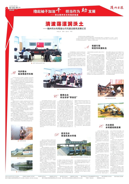 本报记者 王松 通讯员 叶苏 水利是农业的命脉,是重要的民生福祉。 近年来,随州市水利局以作风建设为抓手,通过抓党建,带队伍,正风肃纪树正气,打造了一支为百姓称道的水利铁军,他们以改
