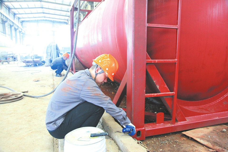 为确保专用车安全,助力随州专汽产业提质增效,日前,湖北特检院随州分院检验人员对专用车公司进行压力容器出厂检督检验。(随州日报通讯员 金雄摄)
