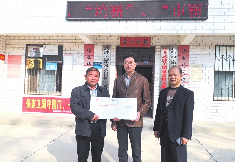 为扎实推进精准扶贫工作,近日,邮储银行随州分行党委书记、行长李有鑫一行深入广水市长岭镇泉水村,对结对帮扶的38家贫困户开展帮扶工作,并现场为泉水村捐赠了基础设施建设扶贫专项资金18000元。(随州日报通讯员 万敏摄)