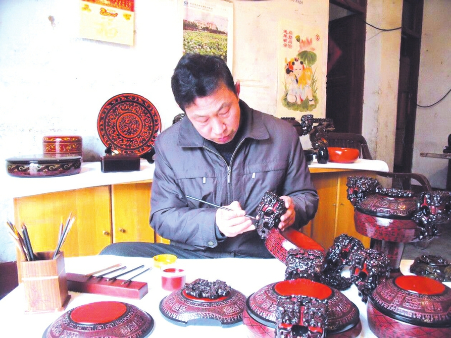 一件漆器的工序多达五六十道,有的甚至达一百多道。他意识到,光有祖传技艺和经验是不够的。漆器复仿制工艺非常讲究,它要求工艺人员既要有广博的历史考古知识,又得是善思动脑的能工巧匠;既要有娴熟的画龙点睛的笔墨功夫,又要有美术绘画学养和较高的文学素养和审美情趣。