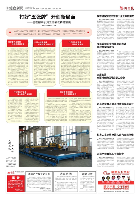 随州日报全媒体记者 张琴 2月25日,省委书记蒋超良同志来随调研时指出,“要注重全产业链、全地域招商引资,围绕打造产业之‘芯’、区域之‘心’、动能之‘新’,强化高质量项目和投资支撑”。