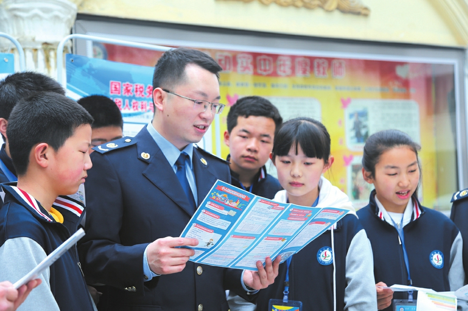 3月29日,国家税务总局随州市曾都区税务局开展税法进校园活动,通过通俗易懂的语言和鲜活的生活事例为中学生们带去了个税启蒙课程,在青少年的心中种下一颗依法缴税的种子。 (随州日报通讯员 张曼曼 龙淑芬摄)