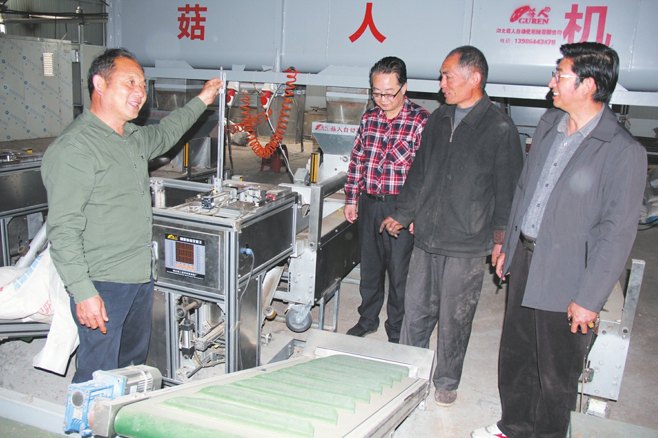 5月14日,市食用菌协会组织专家服务组,到随县万和镇曹门村帮助该村检查香菇菌袋机械化设备生产安全,为安全生产“开药方”。 (随州日报通讯员多思摄)