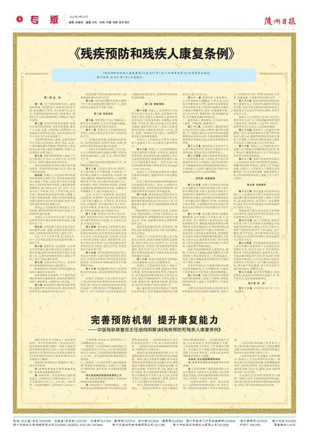 《残疾预防和残疾人康复条例》已经2017年1月11日国务院第161次常务会议通过,现予公布,自2017年7月1日起施行。第一章总 则 第一条 为了预防残疾的发生、减轻残疾程度,帮助残疾