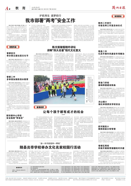 随州日报讯(通讯员顾巍、邓子晨)高考在即,中考临近。近日,市政府专题召开工作会议,落实“四举措”抓好“两考”安全工作,确保实现全市两考工作“三无一和谐”的目标,即:无试卷试题泄露,无大面