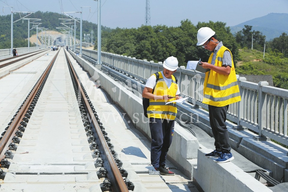 汉十高铁随州段日前进入静态验收阶段。验收组对建成部分进行详细的查勘检测,不放过任何一个细节。(随州日报全媒记者孙洪涛摄)