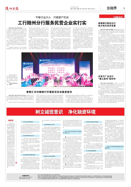随州日报讯(通讯员何善国)近年来,工行随州分行积极践行支持民营企业发展的“路线图”,在经济下行压力不断加大的经营形势下,银企风雨同舟,抱团发展。今年前四个月,该行向民营企业累计投放专汽改造、基础设施建设、农副产品加工等专项贷款5.26亿元,民营企业融资余额达22.88亿元,占公司客户贷款的44.57%。