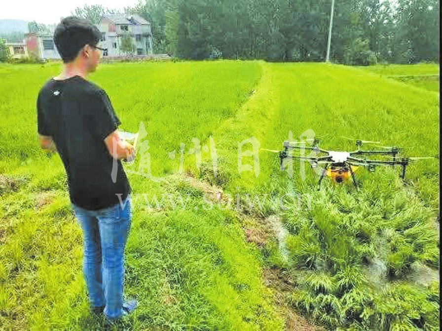 当前,正值水稻田间管理时节,随县供销社组织所属服务机构开展系列服务农业生产工作,助力农业增产、农民增收。图为该社为随县高城镇大桥村一组150亩水稻开展无人机除草、防虫治病服务。(随州日报通讯员 宫 霄摄)