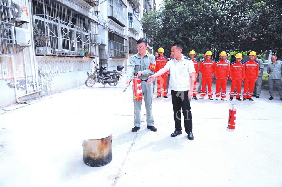 6月11日,曾都区供电公司开展消防安全知识培训演练,进一步提升员工风险防范意识和应急处置能力。图为演练现场。(随州日报全媒记者 王璟天 通讯员 刘星雨摄)