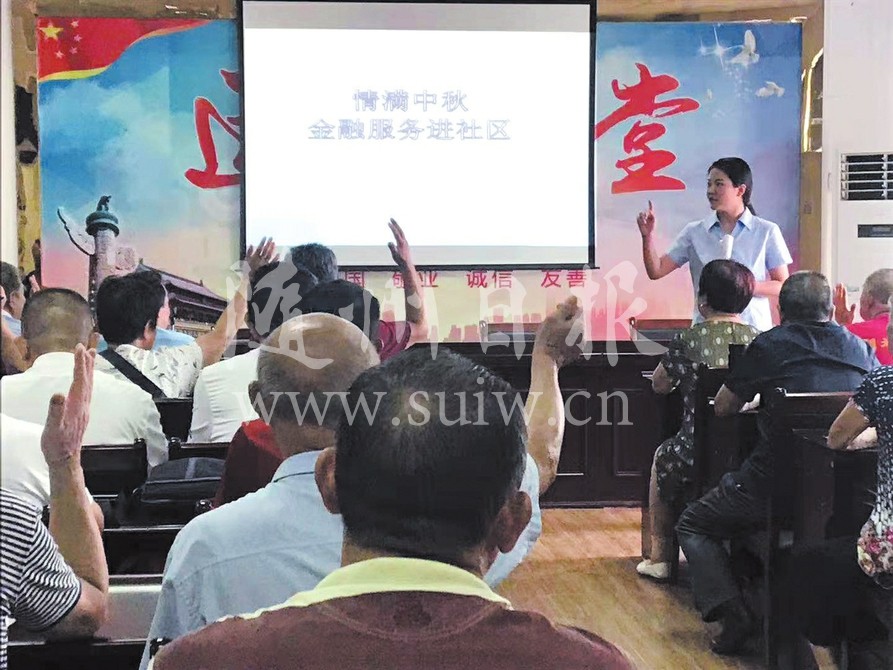 9月12日下午,湖北银行曾都支行走进铁树社区,开展“情满中秋,金融服务进社区”活动。 (随州日报通讯员 龚 晗摄)