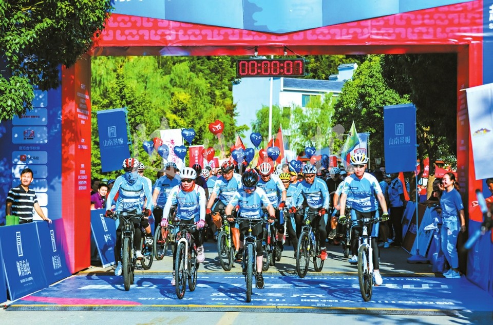 火红的团旗,桔红的团服,岭上云间,海拔八百,盘旋攀登,蜿蜒耀眼!