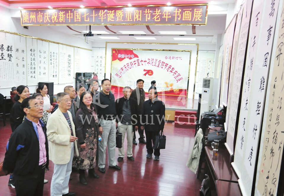 随州老年书画展日前开展。参展的老年书画家以饱满的热情,用书画讴歌祖国,赞美家乡。 (随州日报通讯员樊友刚摄)