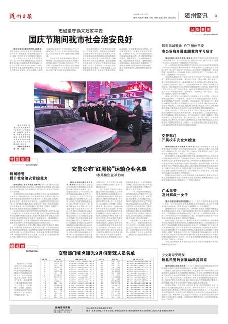 随州日报讯(通讯员常军、姜育庆)国庆节期间,全市公安机关以最高标准、最严要求、最细措施,顽强拼搏、连续作战,确保了全市社会大局持续安全稳定。 节日期间,全市共接报各类警情2013起,其