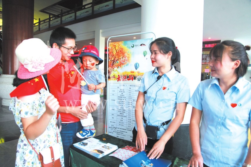 国庆长假期间,大洪山风景名胜区科学调度、及时联动,保障了假日旅游安全有序,实现了“安全、秩序、质量、效益”四统一的工作目标。景区旅游、公安、交通、卫生等工作人员始终坚守岗位,为每一位游客提供最温馨的服务。景区积极开展志愿者服务活动,倡导文明旅游,为往来游客提供线路指引、导游图、医疗救助等服务,营造了良好的旅游环境,展示了大洪山美丽形象。麻竹高速连接线、长岗镇主要交通线路两侧的路灯杆上,数百面悬挂的五星红旗迎风招展,随处可见的彩旗、灯笼烘托出节日的喜庆。热情的态度,周到的服务,在大洪山形成一道靓丽的风景线。此外,由鄂旅投公司等单位联合开展的“鄂爱你,中国”文旅互动活动通过网络直播及“时光慢递”主题合影等形式,极大地带动了游客旅游过程中参与景区活动互动。围绕公益文明旅游宣传,景区还结合世界清洁日面向游客开展清洁身边垃圾兑换公益小礼品等活动。