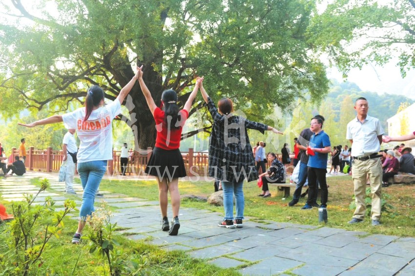 生态与文化有机融合,山水和田园合奏交响。长假里,景区“一镇一带四片区”乡村旅游备受游客青睐。在中国特色小镇长岗镇,处处充满节日的喜庆,众多游客或驻足慈忍公园,或沿涢水河岸行、看古色民居、购大洪山特产,旅游名镇显示出迷人魅力。在珍珠泉村,占地300余亩的“我和我的祖国”主题稻田艺术成为游客打卡必备地,众多慕名而来的游客在这里俨然一家人,手持国旗,齐声高歌《我和我的祖国》歌曲。而在黄木淌村的大洪山花果海休闲农业体验片区,瓜果飘香,吸引了众多游客走进乡村田园,徜徉乡间田野,感受自然气息,体验了一把实地采摘、野外烧烤之乐。在大洪山西大洪山植物园内,艺术造型的数千株对节白蜡,成了众多游客的游乐园,大家纷纷在这里合影、观光。沿景区333省道而建的大洪山百里画廊风光带,数十万株沿道路两旁的花卉苗木在秋日里逐渐呈现出五彩的颜色,一个个别具一格的文化小游园穿插期间,临时小憩、驻足观赏,众多游客陶醉其间。