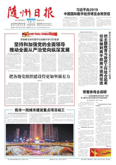 随州日报讯(全媒记者张琴)10月11日,市委中心组集中学习(扩大)会议召开,深入学习贯彻习近平总书记关于加强党的领导和全面从严治党的重要论述,推动“不忘初心、牢记使命”主题教育扎实有效开