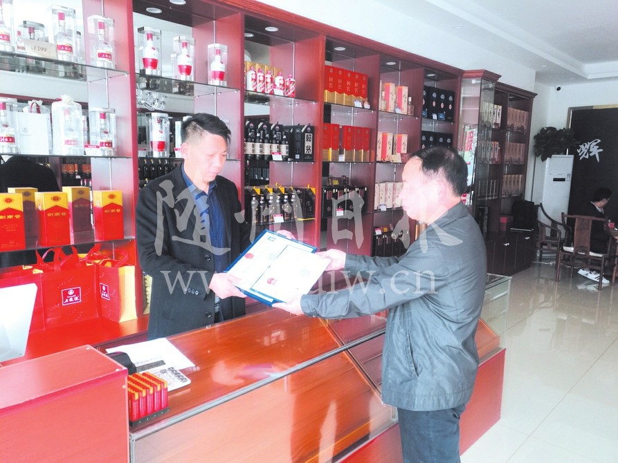 “昨天才在网上填报新办证相关资料,今天就有人上门勘验,这速度我要点个赞!”日前,曾都区东城文峰塔社区辉耀名烟名酒茶专卖店店主鲍双梅高兴地对前来实地勘验的曾都区烟草专卖局工作人员说。