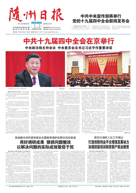 中央委员会总书记习近平作重要讲话。 (新华社发) 中国共产党第十九届中央委员会第四次全体会议,于2019年10月28日至31日在北京举行。中央政治局主持会议。(新华社发) 新华社北京1