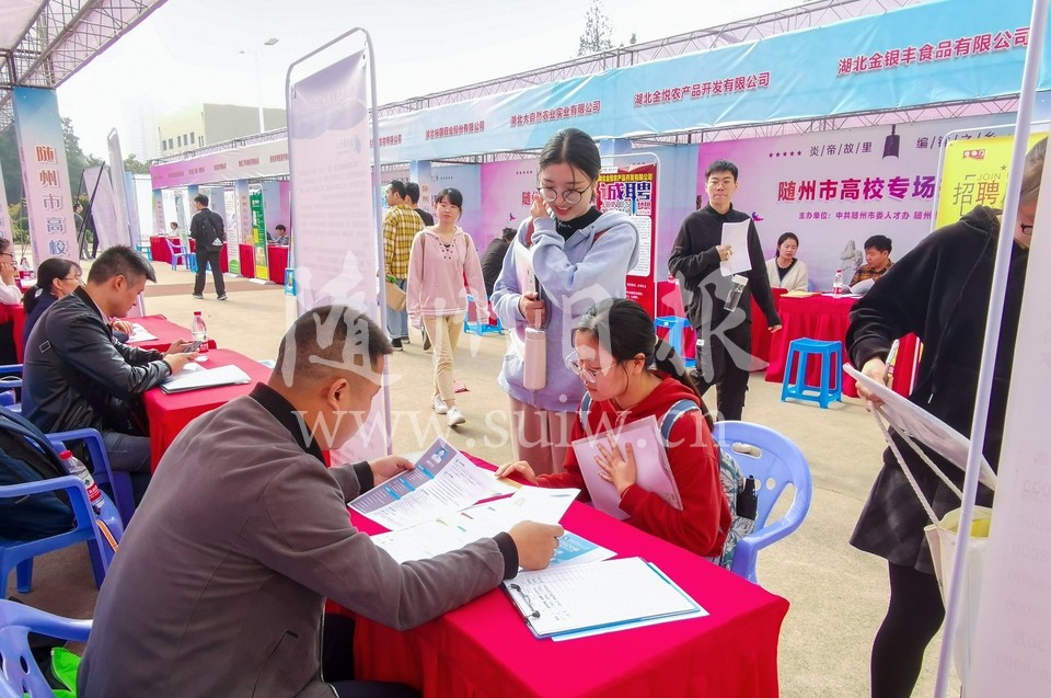 11月1日,武汉科技大学学生宿舍楼前广场上人头攒动,由我市人才办和市校合作办主办的2019年武汉高校巡回招聘会首场招聘会在这里举行,60多家企业现场招贤纳士,吸引了各大高校毕业生参与。据悉,从11月1日至11日,我市组织60多家企业赴武汉11所高校开展巡回专场招聘会。(随州日报全媒记者 李文军摄)