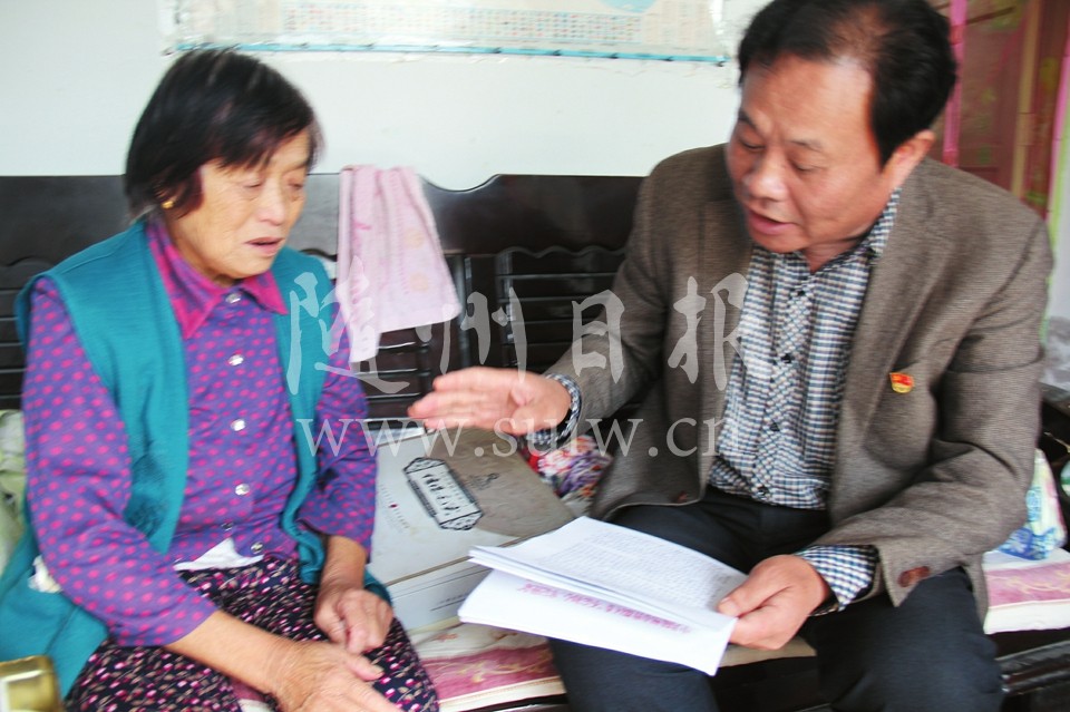 11月1日,曾都区﹃不忘初心、牢记使命﹄主题教育宣讲团成员刘毓到曾都经济开发区新春村为党员宣讲习近平新时代中国特色社会主义思想。图为刘毓到抱病在家休养的老党员夏洪琴家慰问,并进行一对一的宣讲。(随州日报通讯员 多思摄)