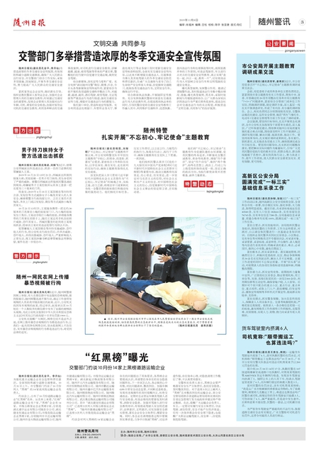 随州日报讯(通讯员孔会平、李月仙)为营造浓厚的冬季交通安全宣传氛围,有效预防和减少道路交通事故,确保广大人民群众出行安全,市交警部门结合工作实际,采取多项措施,因地制宜,开展冬季交通安全