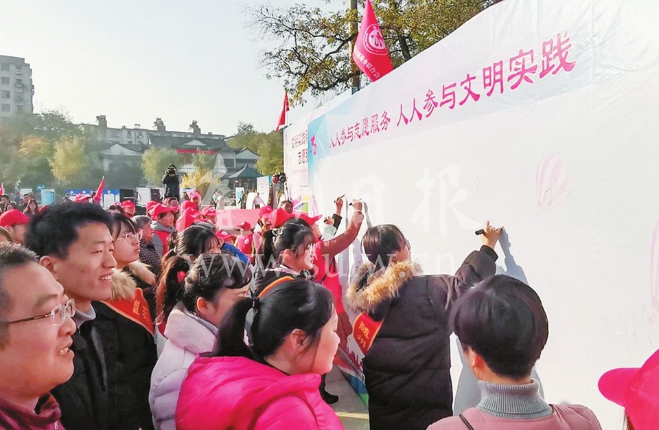 12月5日,市委文明办、市志愿者服务联合会在随城神农公园举行“随州市2019志愿者服务成果展”暨“12.5”国际志愿者日主题志愿服务活动。市发改委、市国资委、市教育局等26家市直单位志愿者服务队员参加了当天的活动。(随州日报全媒记者李文军摄)