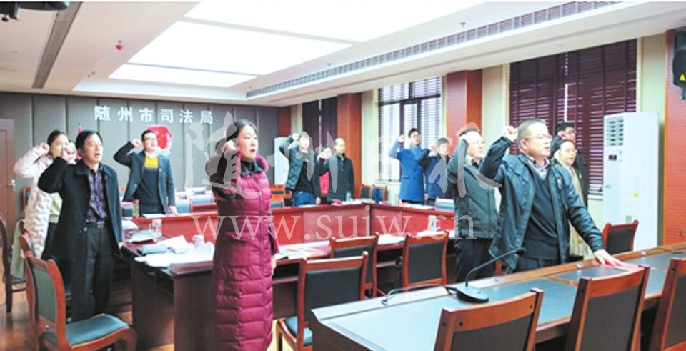 12月4日宪法日前夕,市司法局组织机关干部开展向宪法宣誓活动,进一步彰显宪法权威,弘扬宪法精神,增强遵守宪法维护宪法意识,助力法治随州建设。(随州日报通讯员 郭小亮摄)