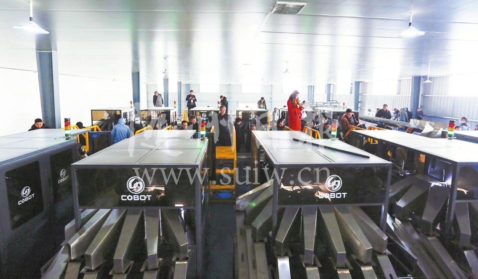 位于随县经济开发区的联丰(随州)食品有限公司是集食用菌产品种植、收购、加工、销售、冷链物流为一体的现代农业企业,连续多年被当地政府评为“突出贡献企业”和“外贸出口先进单位”。图为参加2019湖北·随州国际香菇产业博览会的嘉宾参观该公司的香菇智能分拣系统。 (随州日报全媒记者徐斌摄)