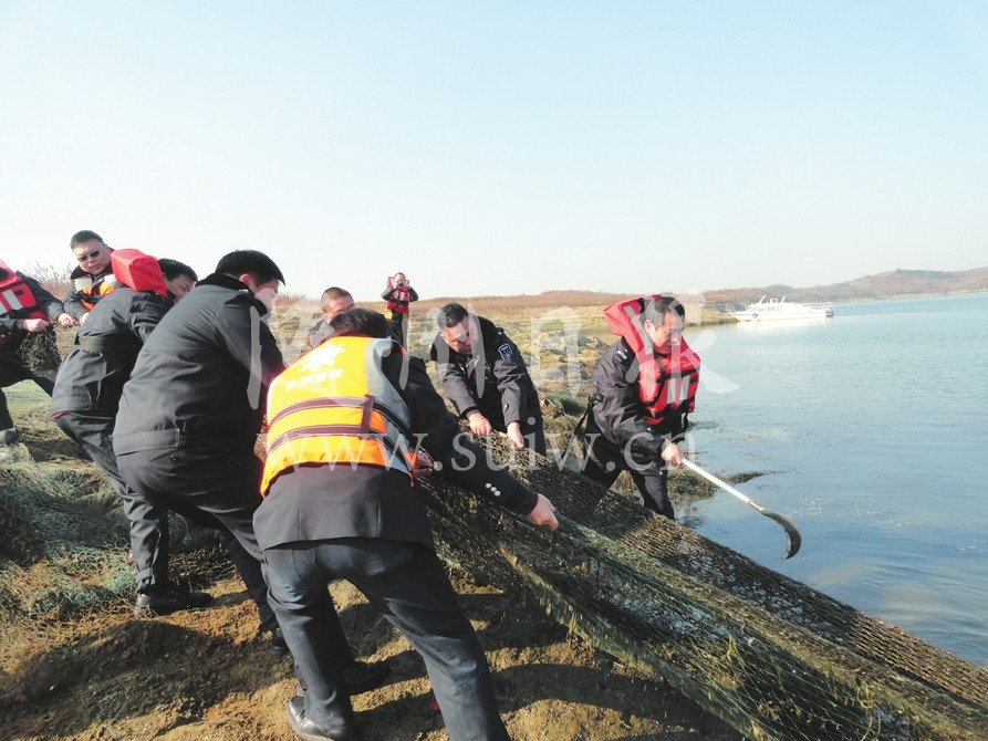 近日,市先觉庙水库工程管理局联合曾都区、广水市、随县渔政执法人员开展联合执法行动,近30名渔政执法人员,对先觉庙水库库汊的拦河大毫、网箱养殖、灯光诱鱼进行彻底清除,消除了多年的顽疾。(随州日报通讯员 刘祖兵摄)