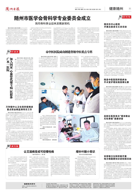 随州日报讯(通讯员徐敏)12月6日至7日,随州市医学会骨科学专业委员会和随州市医师协会骨科医师分会成立大会暨骨关节病的临床治疗进展培训班在随州市碧桂园凤凰酒店召开,来自省内外骨科专业的2