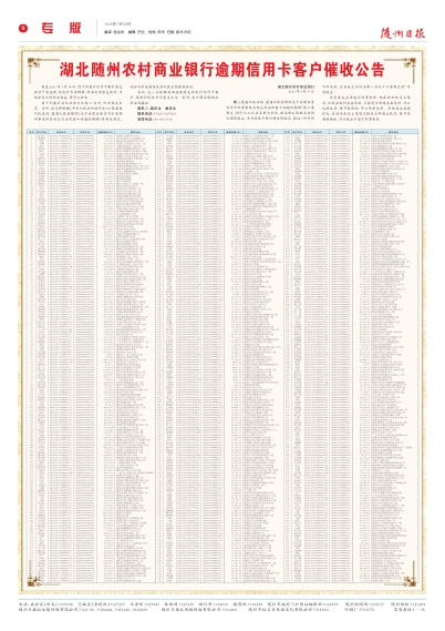 湖北随州农村商业银行逾期信用卡客户催收公告