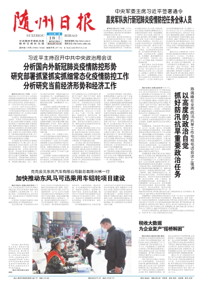 以高度的政治自觉抓好防汛抗旱重要政治任务