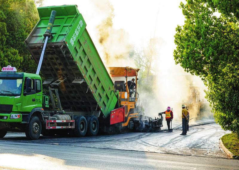 疫情防控形势好转后,我市加快复工复产。图为4月15日,工人在随城迎宾大道上为道路刷黑。(随州日报全媒记者李文军摄)