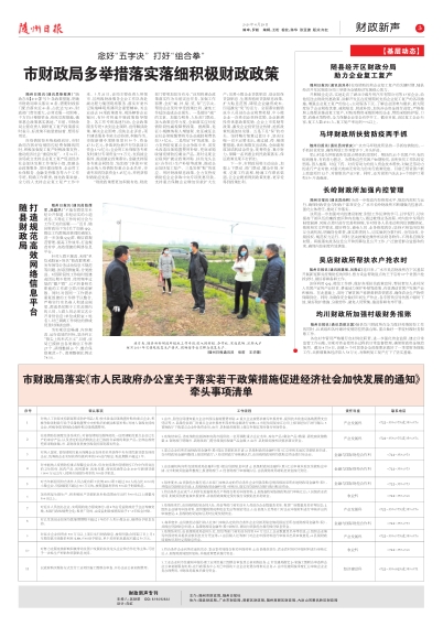 市财政局落实《市人民政府办公室关于落实若干政策措施促进经济社会加快发展的通知》牵头事项清单