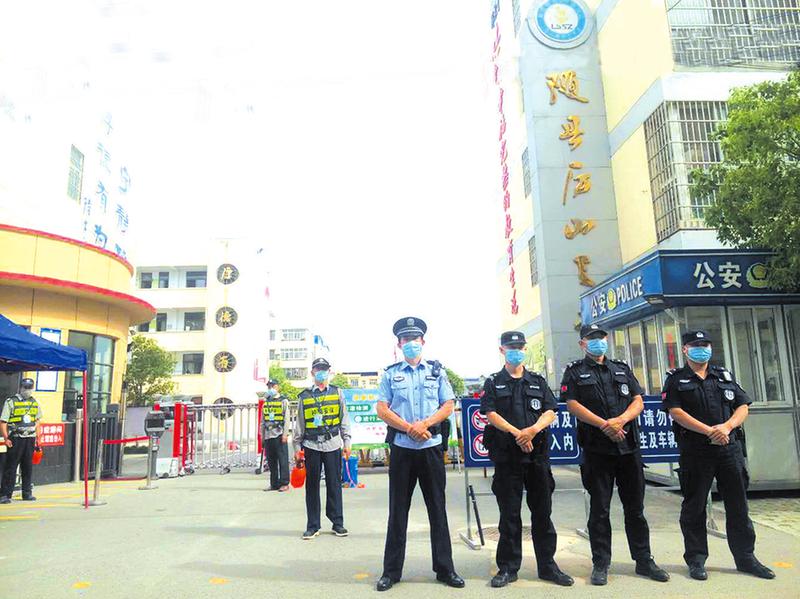 5月20日,随州市初三学生迎来了开学第一天,为做好复学复课期间校园安全防控工作,随州公安全力保障返校师生周边安全。(随州日报通讯员姜育庆摄)
