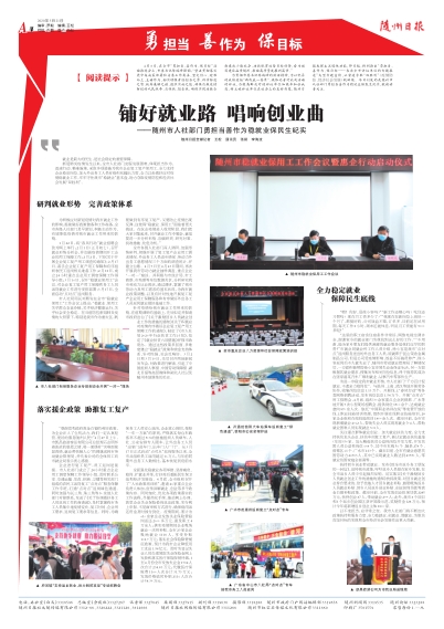 为贯彻市委书记陈瑞峰的讲话精神,为以优异的成绩迎接“两代表一委员”、媒体记者对此次活动的评议,为提高群众对被评议单位知晓率和公认度,树立被评议单位在社会上的良好形象,随州日报发挥主流媒体功能,即日起,特别推出“勇担当、善作为、保目标——来自全市评议单位的专题报道”大型专题宣传,以营造夺取“双胜利”(疫情防控、经济社会发展)软环境。今日刊发的是随州市人社部门勇担当善作为稳就业保民生纪实,敬请读者关注。