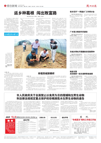 市人民政府关于全面禁止以食用为目的猎捕陆生野生动物和法律法规规定重点保护的珍稀濒危水生野生动物的通告