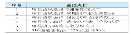 为进一步维护道路交通秩序,预防和减少道路交通事故的发生,保障道路交通安全畅通、文明有序,根据《中华人民共和国道路安全法》及《中华人民共和国道路交通安全法实施条例》、《湖北省实施(中华人民共和国道路安全法)办法》等法律法规的规定,随县公安局交通警察大队经报备审批决定在唐县镇部分路段、路口设置6个点位智能交通技术监控设备,主要抓拍机动车违法停车等交通违法行为进行抓拍并予以处罚,现公告如下,并于2020年8月10日零时正式启用。