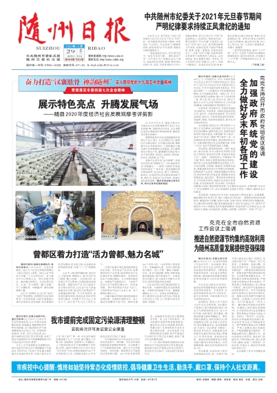 12月27日至29日,随县开展2020年度经济社会发展观摩考评活动,对全县各镇(场)、随县经济开发区、太白顶景区等进行观摩考评和绩效管理、精准扶贫实绩定性测评。