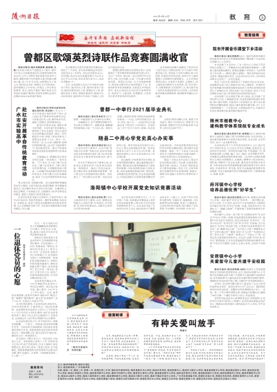 随州日报讯(通讯员刘银凤)近年来,曾都区府河镇中心学校一直注重对“好学生”的培养。一段时期以来,有不少学校、不少老师,甚至有不少家长都把学习成绩的好坏做作为评判“好学生”的唯一标准,导致有些学生“看破红尘”,“破罐子破摔”,严重影响了党和国家教育方针的落地生根。