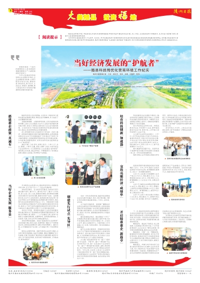 为用实际行动迎接党的二十大召开,为总结一年多来随县各部门营商环境优化的生动实践和推动疫后重振高质量发展的典型事迹,向外展示随县各部门营商环境优化新貌,吸引更多外资投放随县,随州日报特别推出“大美随县·投资福地”专题宣传,今日刊登的是随县科经局优化营商环境工作纪实,敬请读者关注。