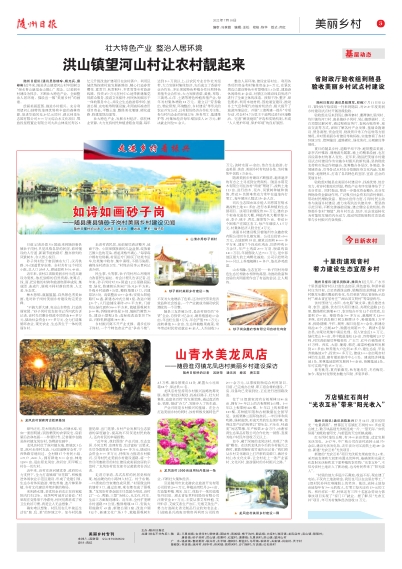 随州日报讯(通讯员张瑞珍、杨光兵、蔡彬彬)近年来,随县洪山镇望河山村牢固树立“绿水青山就是金山银山”理念,以美丽乡村建设为抓手,不断壮大特色产业,全面整治人居环境,描绘出一幅“美丽乡村”的画卷。