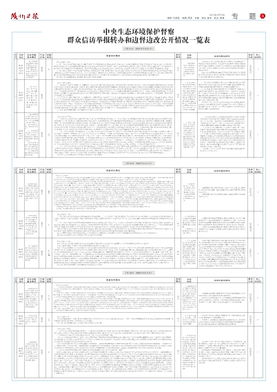 中央生态环境保护督察群众信访举报转办和边督边改公开情况一览表