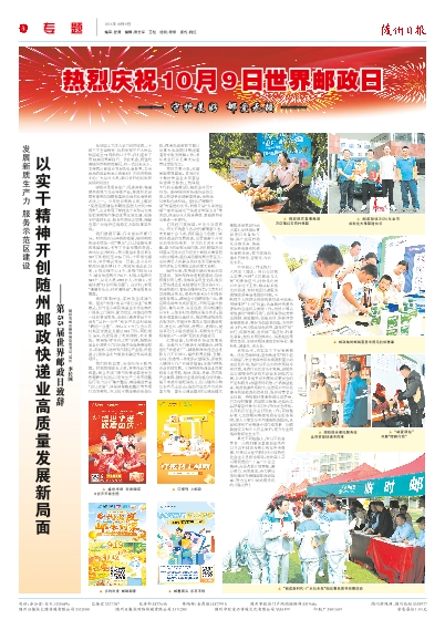 在举国上下深入学习贯彻党的二十届三中全会精神、热烈庆祝中华人民共和国成立75周年的日子里,我们迎来了第55届世界邮政日。借此机会,我谨代表随州市邮政管理局,向一直以来关心、支持我市邮政业发展的社会各界,表示崇高的敬意和衷心的感谢!向我市邮政业的广大从业人员,致以节日的问候和良好的祝愿!