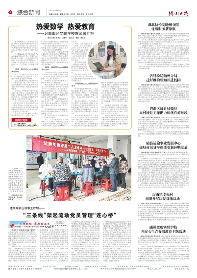 随州日报讯(通讯员杨雯、饶巧巧)流动党员是党员队伍的重要组成部分,加强流动党员管理服务工作是新时代党员队伍建设的必然要求。近年来,随州高新区城东工作局用好用活“三条线”,架起党组织与流动党员之间的“连心桥”,多措并举推动辖区流动党员管理工作提质增效。
