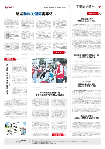 连日来,曾都区涢水街道风光社区联合涢水派出所、碧桂园物业公司在辖区开展反电诈防溺水系列安全知识宣讲活动,通过形式多样的宣教方式,让安全知识真正走进千家万户,助力优化营商环境。 (随州日报通讯员 乐 韵摄)