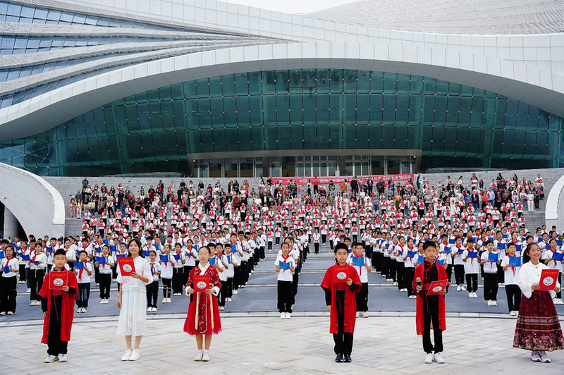 9月28日上午,随州市外国语学校汉孟路校区师生在市城市公共活动中心广场隆重举办“礼乐颂华诞 文脉承随州”——国庆文化嘉年华暨纪念孔子诞辰活动,为国庆、中秋“双节”献上独特贺礼。