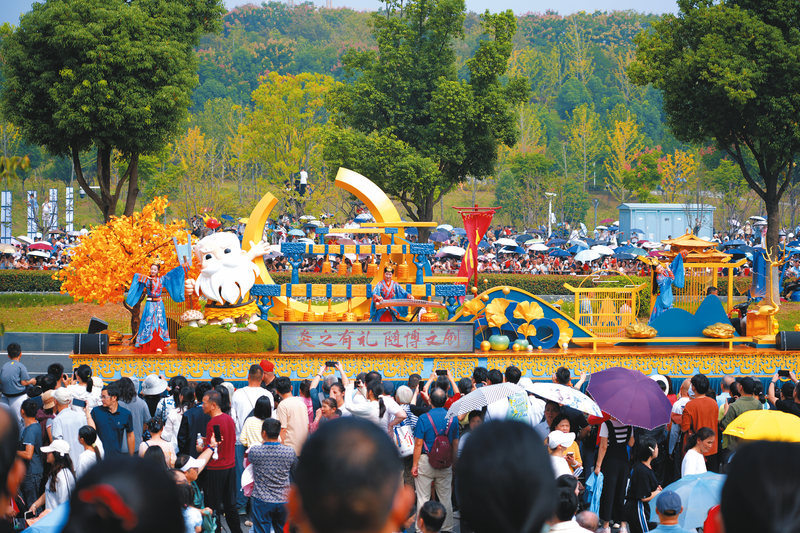 10月1日,2025“河山添锦绣”文旅IP武汉城市大巡游在武汉东湖新技术开发区高新大道举行。金灿灿的随州花车以其独有的曾随文化和炎帝文化,在市州花车方阵中吸引无数游客围观合照,生动诠释“神韵随州 一见钟情”的独特魅力。 (长江云新闻记者周科屹摄)