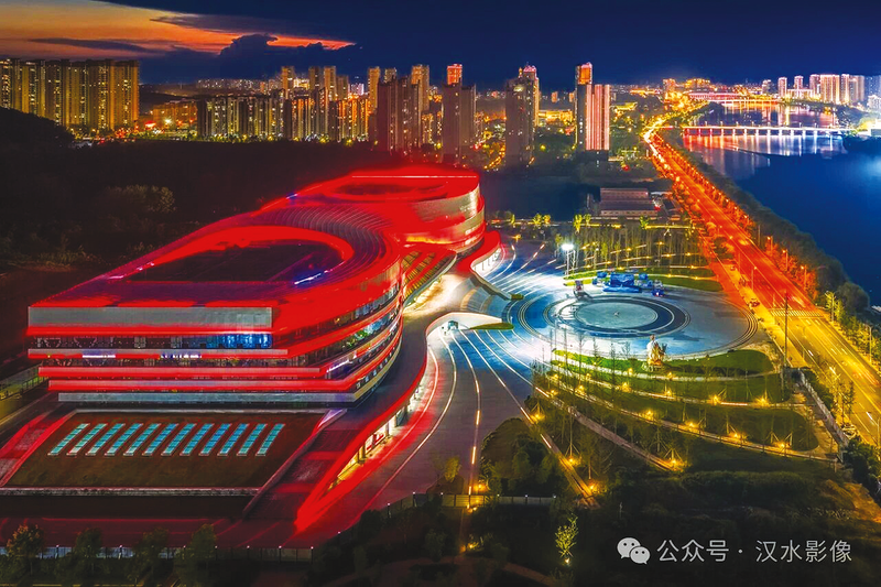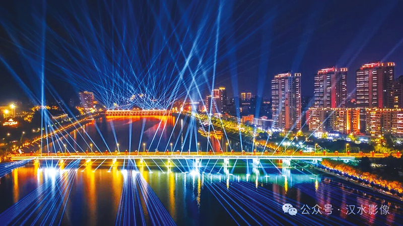 临近20:00时,汉东楼的“灯光演绎”如期亮相。随着夜幕降临,汉东楼墙体上投射出随州历史故事与国庆元素的画面,光影交错间,古楼仿佛“活”了过来。游客们纷纷驻足拍照,记录下这梦幻的瞬间。